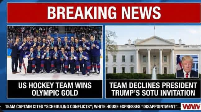 BREAKINGNEWS; United States men’s national ice hockey team who win Gold at Olympic Declines Donald Trump’s Invitation to Attend his State of the Union Address, as they states reason why