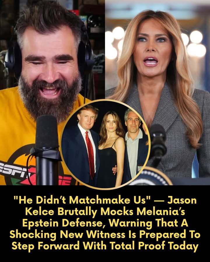 The caption that quickly went viral read: “He Didn’t Matchmake Us” — Jason Kelce just brutally mocked Melania Trump’s defense regarding her dark Epstein ties. As the NFL legend laughs off her claims, he warns that a shocking new witness is ready to expose everything. See the evidence!