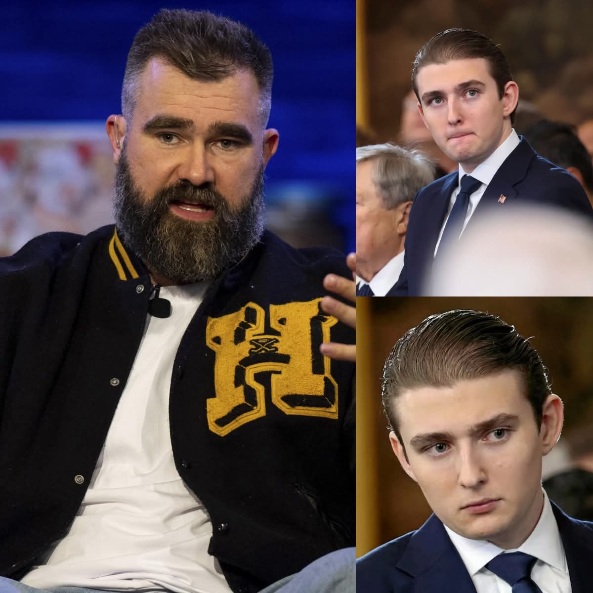 Washington, D.C. – Chaos erupted during a high-profile ESPN crossover segment when former NFL star **Jason Kelce**, appearing as a guest analyst, unleashed a blistering on-air takedown that left viewers stunned—and reportedly triggered an explosive reaction from **Barron Trump**.