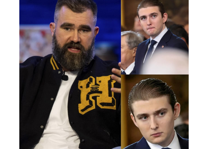 Washington, D.C. – Chaos erupted during a high-profile ESPN crossover segment when former NFL star **Jason Kelce**, appearing as a guest analyst, unleashed a blistering on-air takedown that left viewers stunned—and reportedly triggered an explosive reaction from **Barron Trump**.