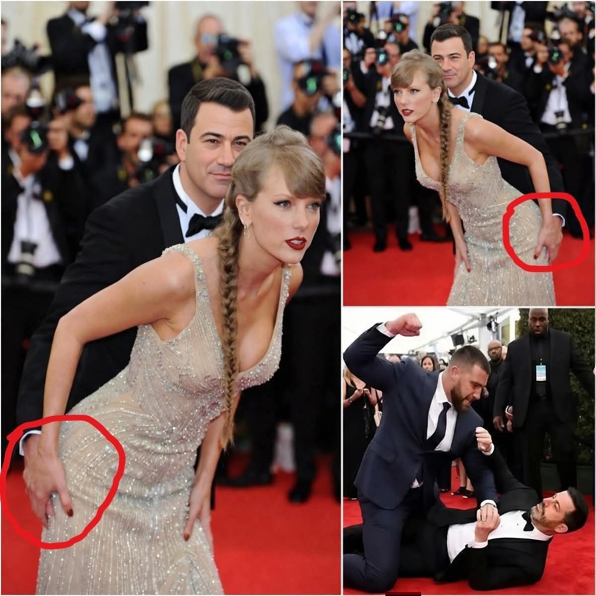 SHOCKING MOMENT ON THE RED CARPET! What started as an innocent slip quickly turned into a heated confrontation between Travis Kelce and Jimmy Kimmel, unfolding before hundreds of cameras. The situation escalated so rapidly that security barely had time to react.