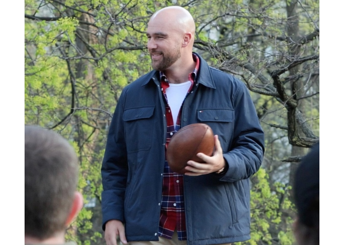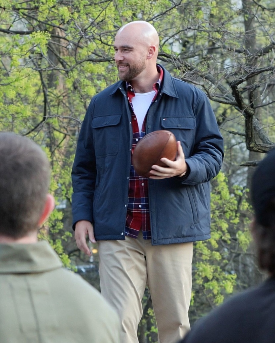 Travis Kelce Was Spotted with a Bald Head While Doing a Photoshoot for Tommy Hilfiger in Central Park