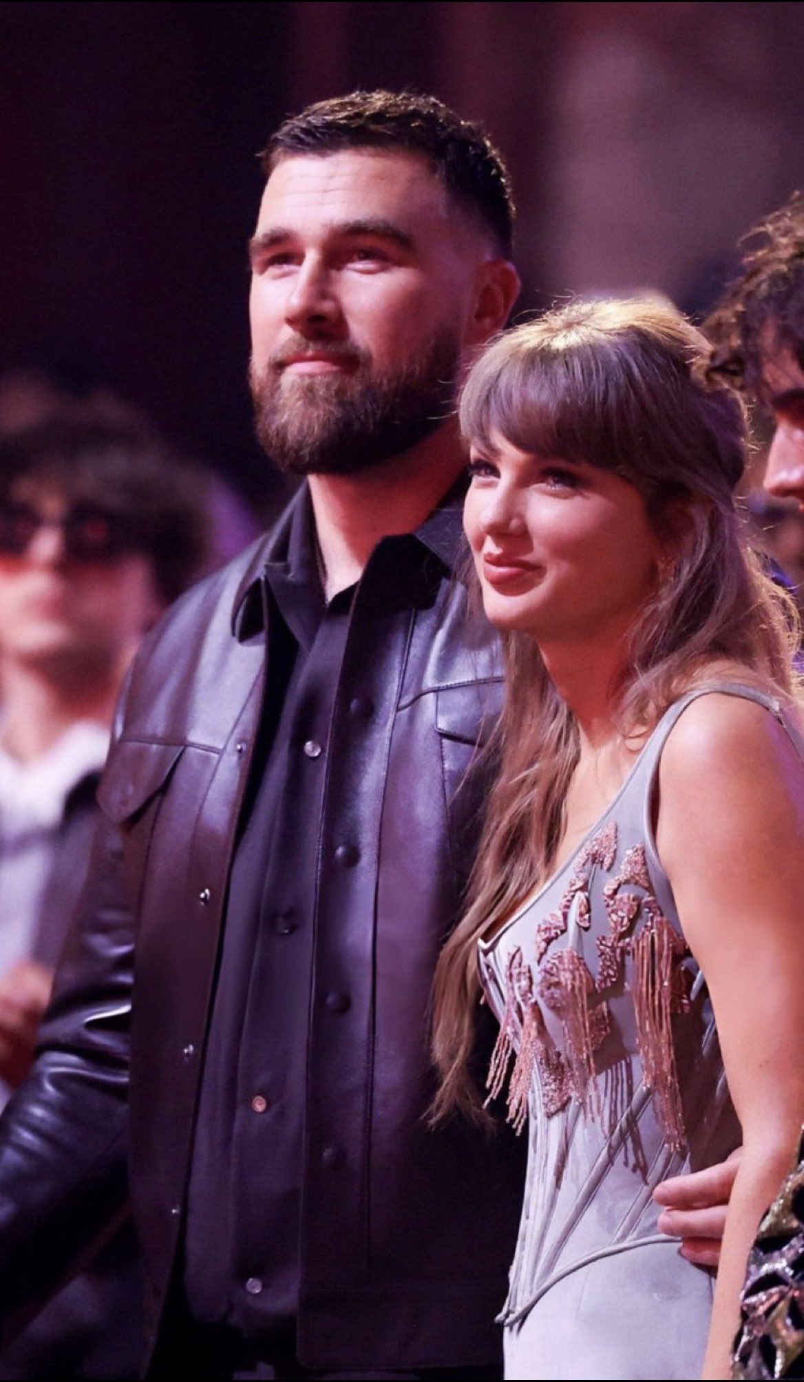 Holding the gleaming trophy, Swift paused amid the applause, her voice softening as she turned her attention to the man who has stood by her side.